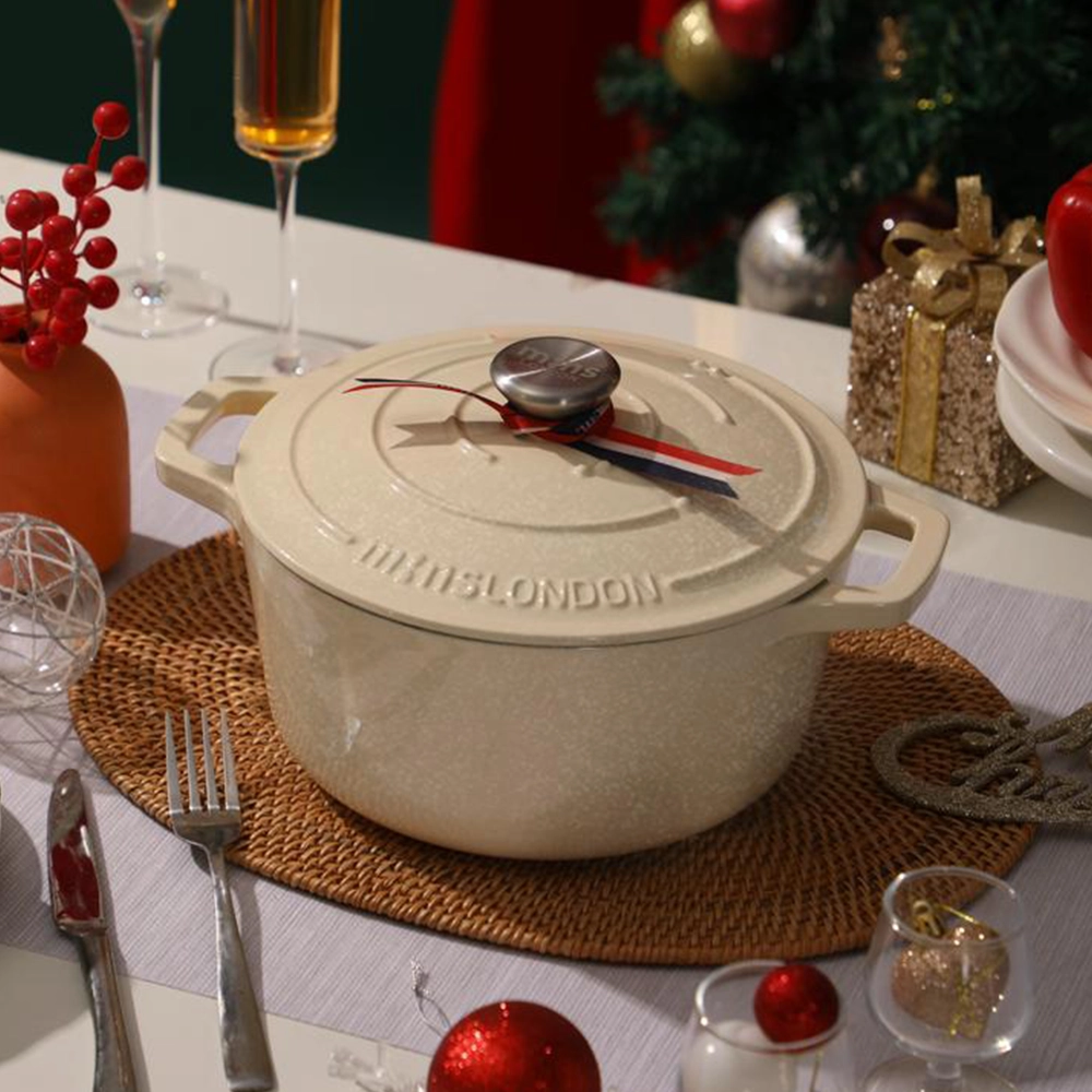 Bring festive magic to your kitchen with this exclusive enamel pot, crafted with premium cast iron, vibrant holiday design, and exceptional heat performance.